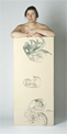 Selbst 2011 mit Zeichnung : "Ich, blauäugig – Frau" 1988, Farbstift auf Papier, 3 á 56 x 42 cm Fotographie: Rosa Benz, Berlin, 2011